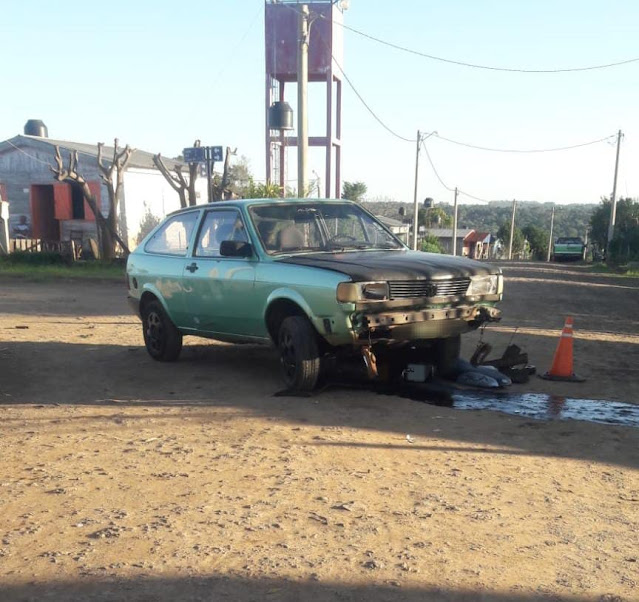 Un accidente de tránsito se produjo este sábado por la tarde en el barrio Samaritano de San Vicente, cuando un automóvil Volkswagen Gol y una motocicleta Motomel colisionaron en una calle interna.