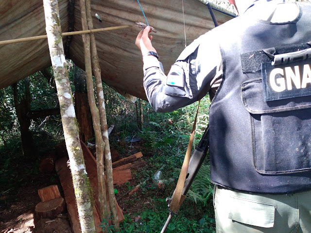 En el marco de un operativo de control ambiental, efectivos del Escuadrón 49 “San Vicente” de la Gendarmería Nacional ingresaron a pie a la Reserva de la Biósfera “Yabotí”, donde detectaron dos campamentos clandestinos utilizados para la caza y pesca ilegal de especies protegidas. Los gendarmes procedieron a desmantelar las instalaciones y secuestrar los elementos hallados en el lugar, entre los que se encontraban armas, municiones, redes, anzuelos y cuchillos. Además, en las inmediaciones de los campamentos se observaron restos óseos y pelajes de varios animales en estado de descomposición, lo que evidencia el daño causado a la biodiversidad de la zona.
