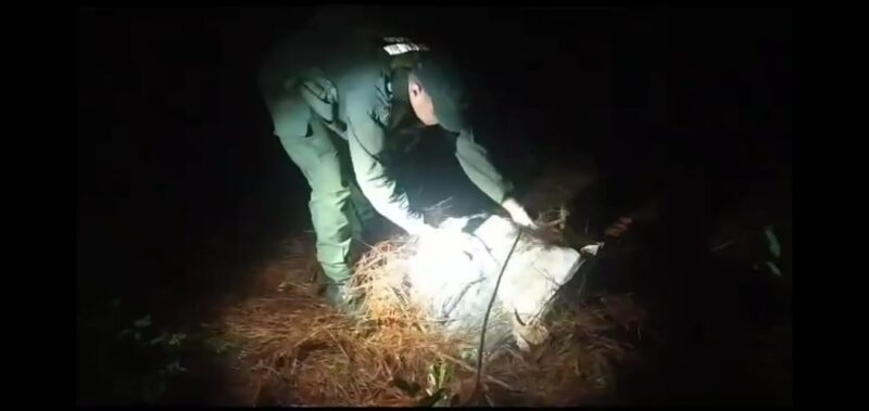 El operativo estuvo a cargo de la Sección “San Pedro” de Gerdarmería, que realizaba actividades de prevención sobre la Ruta Nacional Nº 14 y localidades cercanas. En la tarde del martes, una patrulla pedestre que recorría el paraje Puerto Argentino observó un montículo de vegetación seca, del cual sobresalía un objeto blanco de material sintético.