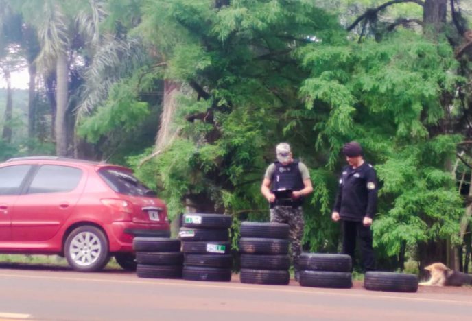En la tarde de este miércoles, efectivos pertenecientes a la Unidad Regional XV de Montecarlo, secuestraron preventivamente un vehículo Peugeot, el cual trasportaba 15 neumáticos de diferentes mediadas, de origen extranjero ingresados ilegalmente a la provincia.