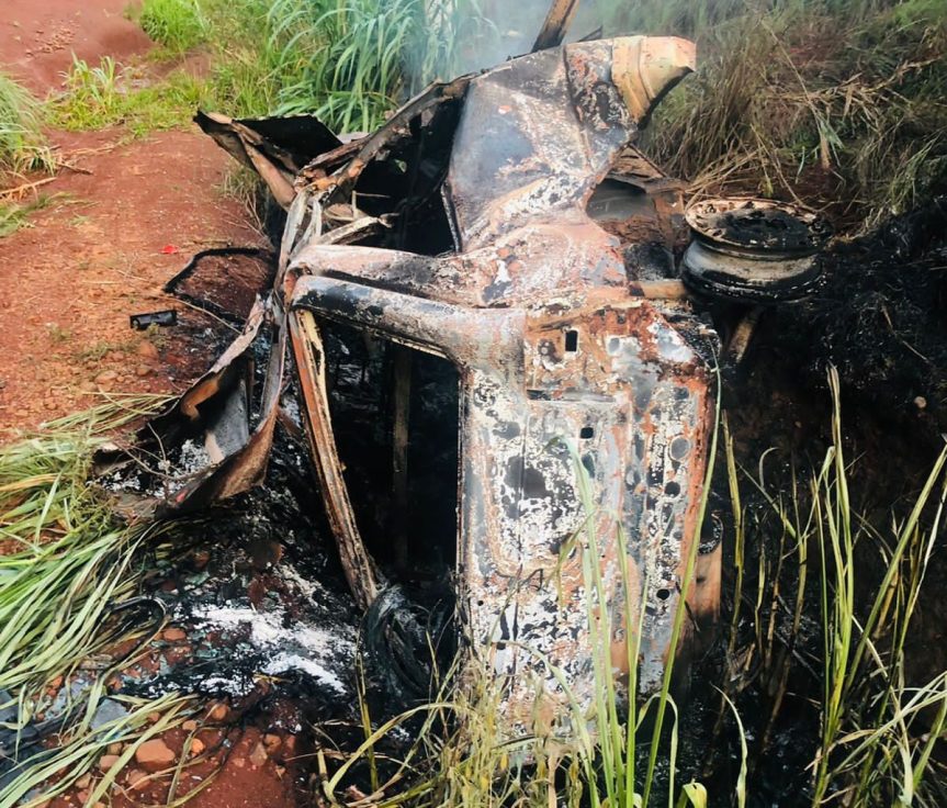 La Policía constató un aparente despiste e incendio de un vehículo. El conductor estaba dentro del auto calcinado.
