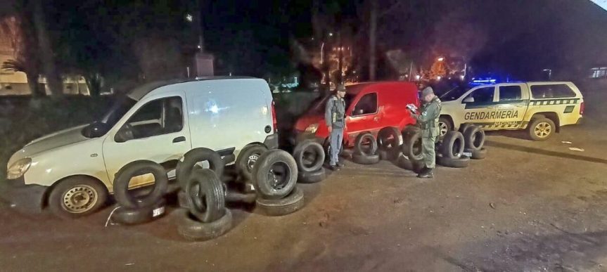 Más de 50 neumáticos de contrabando eran transportados dentro de dos utilitarios