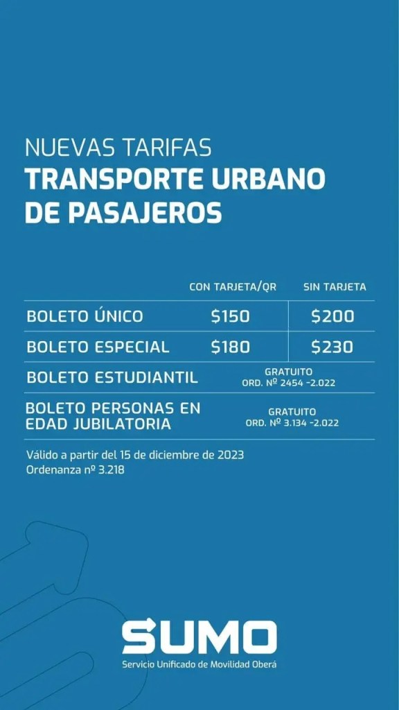 Desde este viernes, el boleto urbano en efectivo costará 200 pesos, mientras que con QR del Sumo el valor es de 150 pesos.