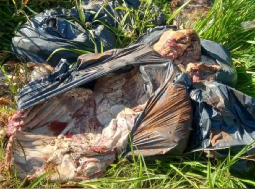 Enormes bolsas negras con carne en su interior fueron encontradas en el basural del barrio de Santo Pipo.
