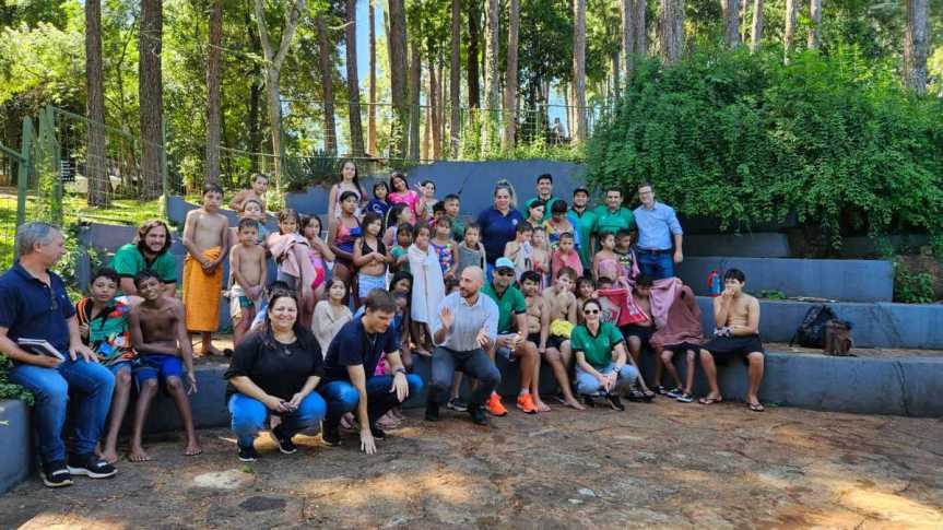 Junto a sus respectivos equipos de trabajo, compartieron un momento con los niños, niñas y adolescentes que participan de la tercera semana de Colonia de Vacaciones que se desarrolla en el camping municipal Salto Berrondo.