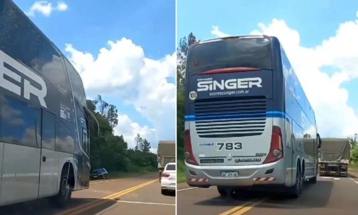 La maniobra peligrosa fue filmada en la ruta 14 cerca de la ruta 9, donde un colectivo de la empresa Singer se adelanta en doble línea amarilla a un auto marca Peugeot 207. El conductor del vehículo menor durante varios segundos le toca bocina y no le permite al micro volver al carril detrás del camión, incrementándose el riesgo sobre la arteria nacional.