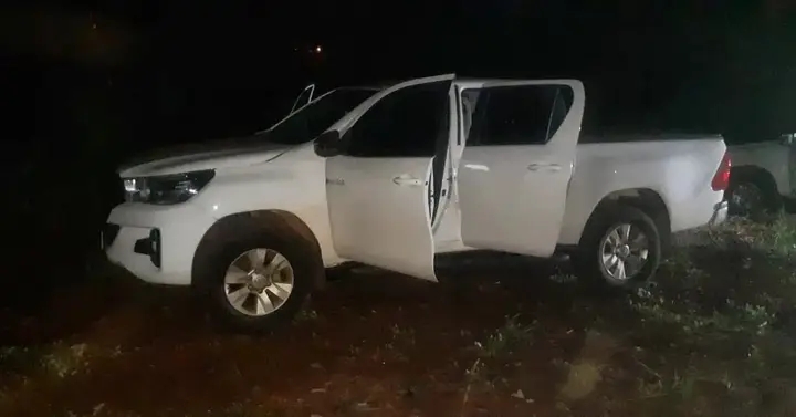 Es así que cerca de las 02:50 horas, durante las recorridas de las búsquedas los efectivos policiales hallaron oculta entre un sector de malezas de la Colonia Pedregullo, la camioneta doble cabina que fue denunciada. Además, en las inmediaciones, se encontró oculta entre las malezas una franela naranja con un revólver vacío calibre 32. Tanto el arma como el rodado fueron incautados.