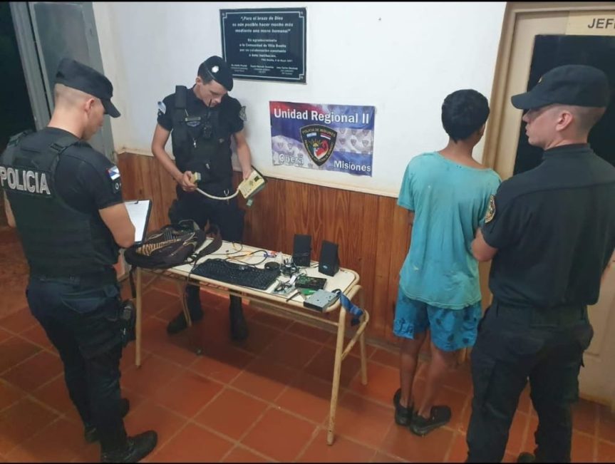 Se trata de Gonzalo, de 15 años de edad, quien fue demorado por efectivos de Villa Bonita, tras constatar que transportaba elementos robados el pasado 23 de febrero del Centro de Jubilados sito en el Barrio Primero de Mayo, hecho denunciado por Lucía Griselda V. (54), encargada del lugar.