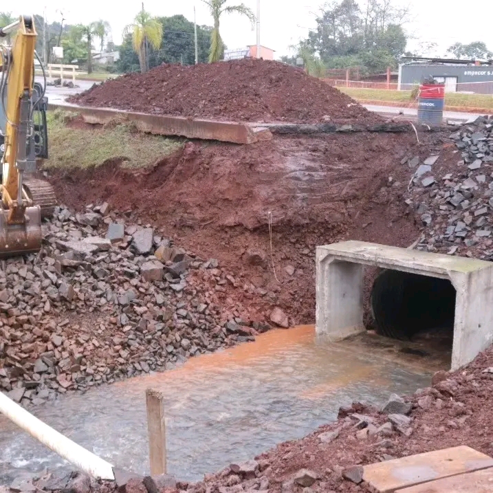Luego de la recepción de las dovelas prefabricadas de hormigón, proveídas por la Dirección Provincial de Vialidad, se procedió a la preparación del cause del arroyo Mbotaby con una base sólida de piedras para su posterior colocación.