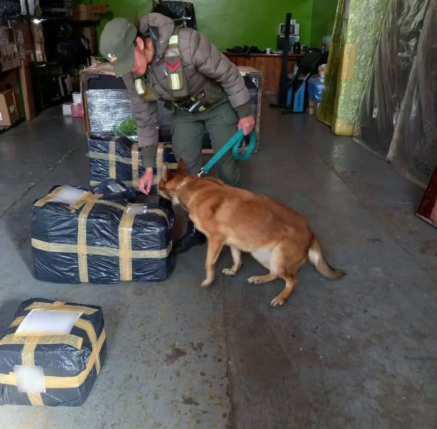 Durante un control llevado a cabo en un centro de distribución de encomiendas en la ciudad de San Carlos de Bariloche, gendarmes del Escuadrón 34 Bariloche “Cabo Primero Marciano Verón” con apoyo del can detector de estupefacientes “Bama”, identificó cuatro bultos provenientes de la provincia de Misiones.