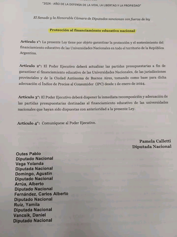 «Gracias a esto trataremos de lograr que sea ley para que todas las Universidades del país tengan el mismo tratamiento presupuestario y federalización de los recursos para su financiamiento. Donde solicitamos entre otras, que el Ejecutivo Nacional actualice los presupuestos y envíe los fondos que corresponden a las Universidades Públicas del país», agregó Fernández.