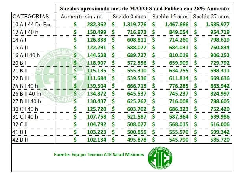 Desde el sindicato ATE Misiones, indicaron como quedan los sueldos en Salud Pública de Misiones.