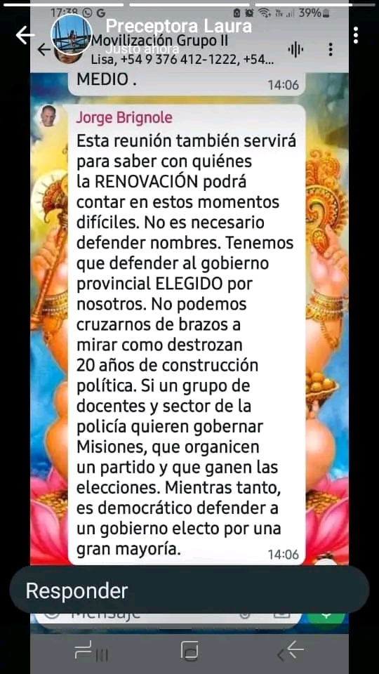 «Este jueves 30 de mayo, en la explanada de la Cámara de Representantes, convocamos a una movilización en apoyo «a la democracia, la paz y la libertad de los misioneros». A partir de las 16 hs», dice la convocatoria llevada adelante por el ex intendente Jorge Brignole.
