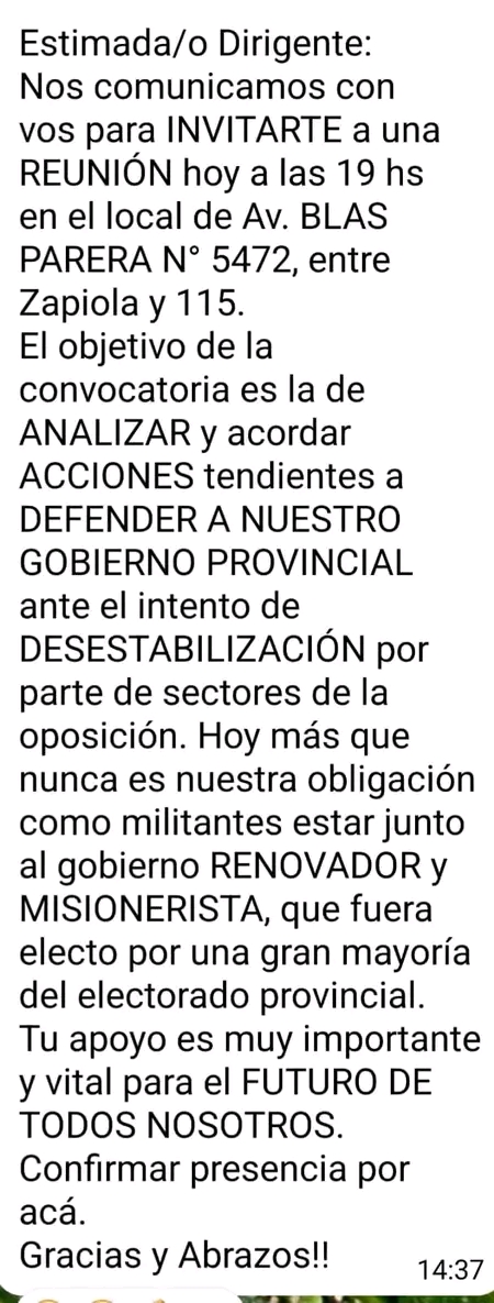 Bajo el hashtag #30Mporlapaz, los militantes del caudillo renovador Carlos Rovira, se convocaron a través de grupos de WhatsApp para defender el «modelo misionerista».