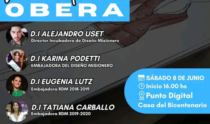 • FASHION BUSINESS: Profesionaliza tu Emprendimiento de Moda. Capacitador: D.I. Alejandro Uset, director de Incubadora de Diseño Misionero, especialista en Marketing de Moda y miembro de la Cámara Argentina de la Moda.
