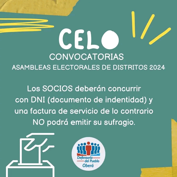 «A los habitantes de Oberá, socios de la Cooperativa Eléctrica Limitada de Oberá, después de múltiples dificultades institucionales, económicas y financieras; la Celo retoma el camino de la normalidad al haberse convocado a elecciones que determinarán quienes serán sus nuevas autoridades», señalaron desde la defensoría en este día de elecciones.
