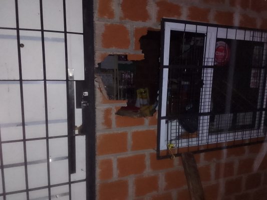 Los delincuentes realizaron un boquete en la pared, y se llevaron «juguetes, medias, una bolsa de alimentos para perros, las cortinas», dijo Carlos.