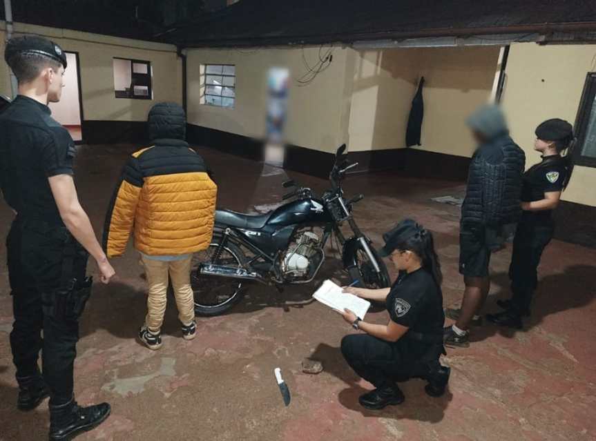 Rápidamente, los efectivos retomaron la búsqueda y en calle San Martín y Córdoba ubicaron a los implicados, procediendo a la detención de Lorenzo B. (a) caño de escape (19) y a la demora de un adolescente de 15 años, quienes circulaban en la moto sustraída que fue secuestrada en el procedimiento junto a un cuchillo tipo carnicero.