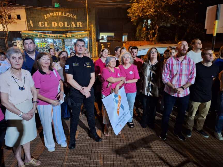 Durante esta tarde, el personal femenino de las distintas Dependencias del Comando Regional participó de una Charla de Concientización sobre la enfermedad, que finalizó con el encendido de las luminarias en la Municipalidad de Oberá y, posteriormente, en el edificio de la UR II y de la Seccional Primera.
