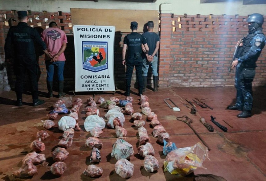 Anoche, la Policía de Misiones arrestó a dos hermanos, de 28 y 25 años, acusados de robar y faenar un animal vacuno perteneciente a un colono en San Vicente.