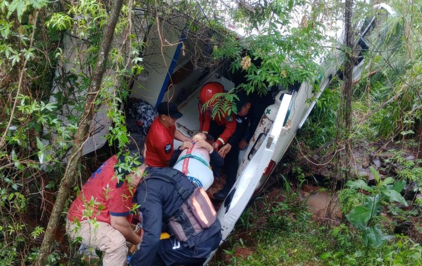 Alrededor de las 13:45, en el kilómetro 1379 de la ruta nacional 12, una ambulancia, conducida por Roberto Zisman, quién circulaba sentido Posadas-Iguazú, perdió el control del rodado, despistó y quedó en un barranco.