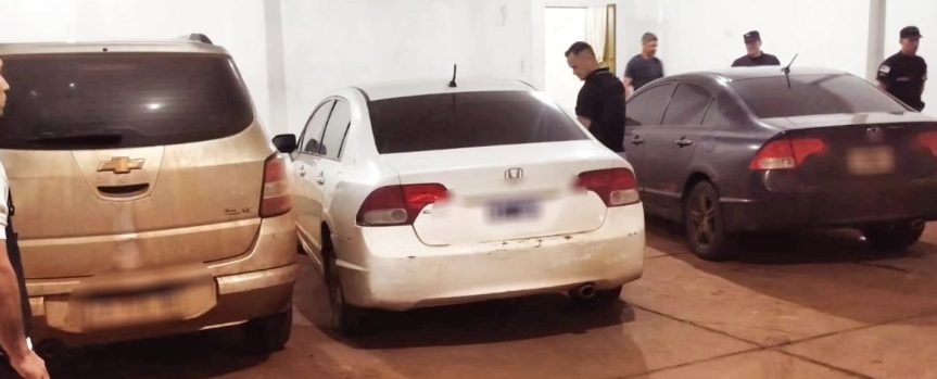 Por ello, con orden del Juzgado de Instrucción N.º 1 de Puerto Rico, alrededor de las 18 horas, los efectivos irrumpieron en el inmueble. Durante la inspección, hallaron un Chevrolet Spin y un Honda Civic, ambos robados en la provincia de Buenos Aires, además de otro Honda Civic que tenía una chapa patente correspondiente a una VW Amarok registrada en Resistencia, Chaco.