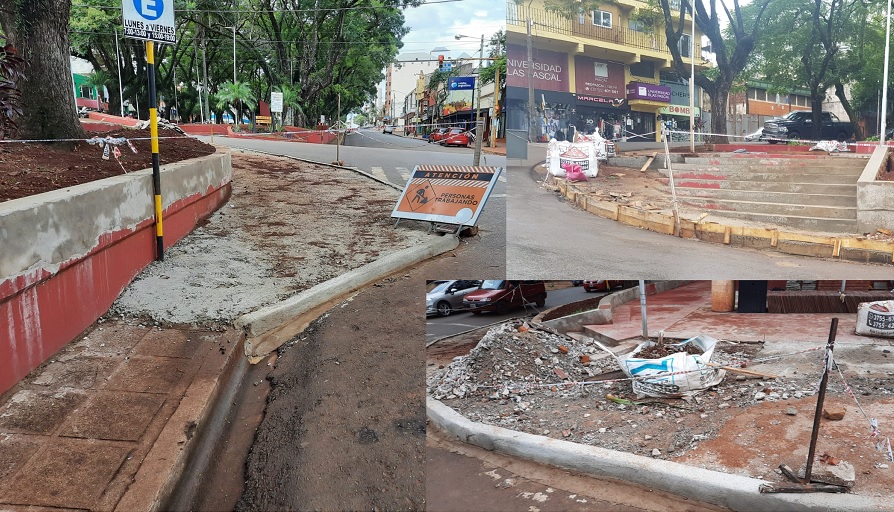 Obras de ensachamiento de veredas en el centro de Oberá