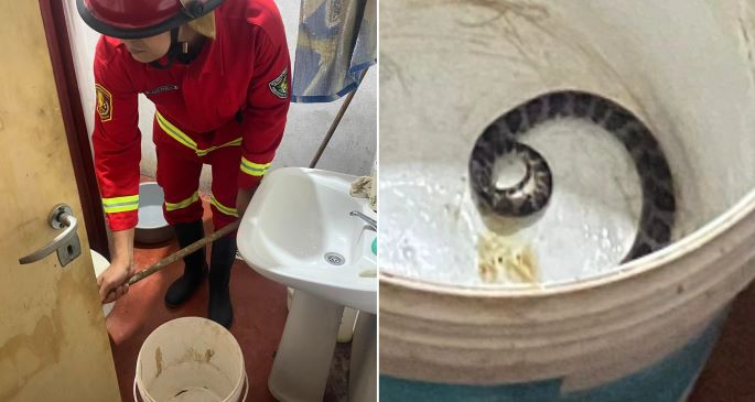 Casi a la medianoche, una mujer fue al baño y, al encender la luz, se encontró con una serpiente enrollada junto al inodoro. Sin dudarlo, llamó a los bomberos a través de la línea 911, quienes se encargaron de resguardar al ofidio.