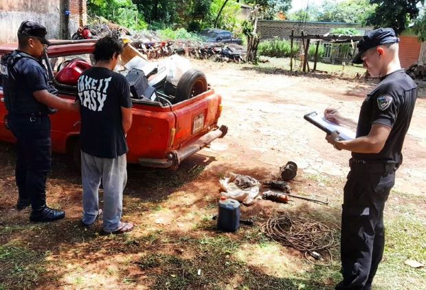 En la tarde de ayer, agentes policiales arrestaron a un hombre de 46 años y a un adolescente de 16, cuando intentaban trasladar las partes de vehículos que estaban ocultos en una zona de malezas en la localidad de Guaraní. Los elementos habían sido robados momentos antes.