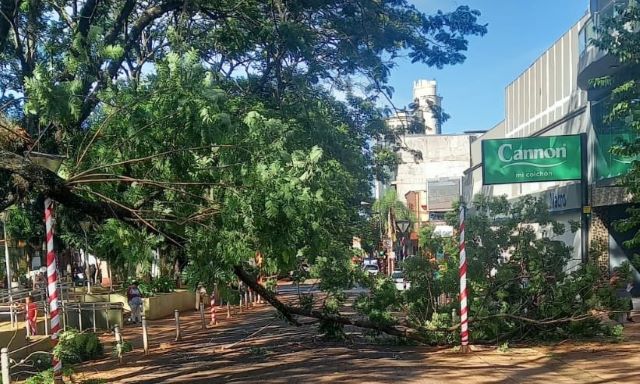 El quiebre de la rama de uno de los árboles de la Plazoleta ubicada frente a la UR II Oberá, motivó la momentánea interrupción del tránsito por el lugar sito sobre Avda. Sarmiento y calle Jujuy.