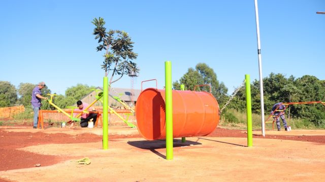 Los trabajos realizados son movimiento de suelo en el 70% del terreno de la plaza, dónde se está terminando la primera etapa con la construcción de sendero interno, construcción de 6 plateas circulares para juegos, además se realizaron la colocación de juegos que son hamacas, sube/baja.