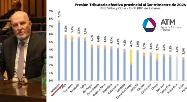 El presidente del PRO Misiones y diputado provincial de Oberá, Horacio Loreiro, criticó la fuerte carga impositiva difudiendo un cuadro que grafica a la provincia manejada por Carlos Rovira, encabezando el ranking de presión tributaria en el país. «Misión: Asfixiar a los misioneros», expresó el legislador de la oposición.