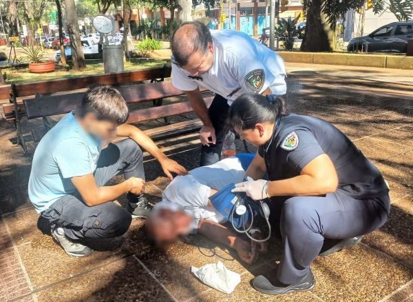 Ayer a la mañana, los agentes de la División Servicios Sociales de la Policía de Oberá, respondieron a una emergencia para asistir a un hombre de 65 años, que se encontraba descompensado y convulsionando en una plaza céntrica.