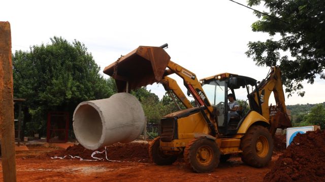 La obra en el barrio de 100 Hectáreas se inició en la calle Casco Romano, con dos desagües pluviales, está tiene intersección con la calle Azota Caballo donde se realizará una cámara más.