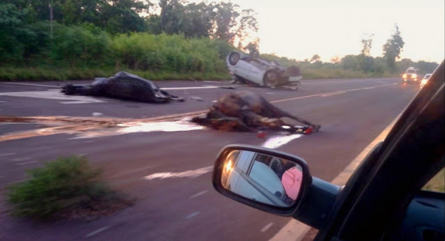 Junto al vehículo, sobre la cinta asfáltica, yacía un caballo muerto y otro con heridas. Al momento del hallazgo, no se encontraron ocupantes en el lugar.