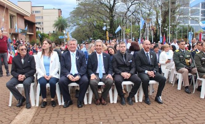 Fueron 26 escuelas que dijeron presentes en el acto oficial de Oberá, presentando abanderados y escoltas, sumado a una delegación de la entidad escolar, además participaron de las actividades artísticas y de la exposición scon stand alusivo a la fecha patria.