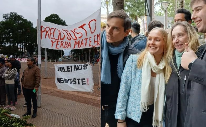 Manifestantes de la CTA, yerbateros y tareferos se cruzaron con militantes libertarios y agentes de seguridad de la policía federal durante una breve recorrida de la hermana del presidente, Karina Milei, por las calles del centro de Oberá.