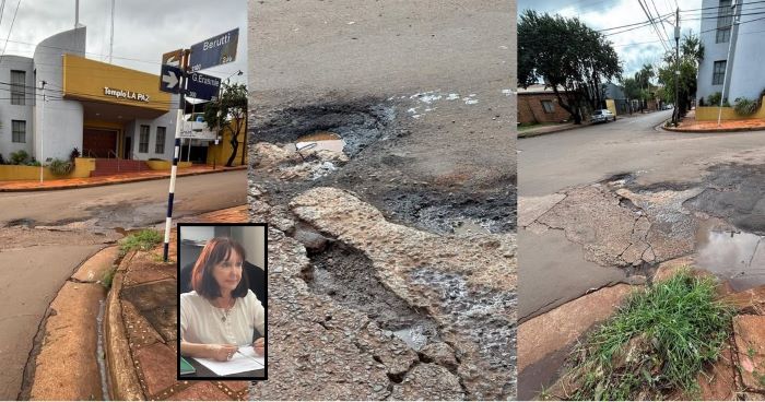 «Desde el Concejo Deliberante, presenté un pedido al municipio para que se repare el bache ubicado en la esquina de Erasmie y Berutti. Esta zona es muy transitada por vehículos particulares, transporte urbano y peatones. Además, conecta a importantes centros educativos como la Escuela Normal Superior y el Instituto Emanuel, así como al Oberá Tenis Club y al Templo Evangélico que se encuentra en la misma calle», señaló la edil.
