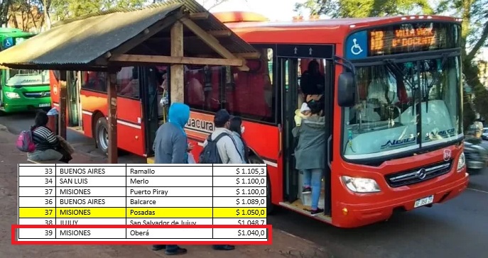 La tabla que difudió la FATAP detalla valores de 39 localidades, mostrando a Oberá con el valor del pasaje con tarjeta o código QR más barato del país, al precio de $1.040, seguida por Jujuy con $1048 y luego Posadas en $1.050, que junto a la primera mencionada, el servicio está en manos del Grupo Zbikoski, de manera monopólica en ambas ciduades misioneras.