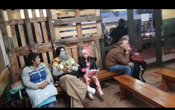 «Esta es la Sala de Espera de los Consultorios Externos de Pediatria, tapado con palés y ya pasan dos meses que están de esta manera», denunció el sindicalista de ATE, Jorge «Coki Duarte». Se trata del hospital Samic Nivel 3 de Oberá. El improvisado arreglo lleva meses en esta precaria situación que se hace sentir más con las bajas temperaturas de estos días.