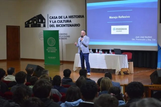 El taller fue dictado por Juan José Niedfeld, gerente de Prevención y Seguridad Vial de Rivadavia Seguros, quien brindó una charla dinámica y reflexiva sobre seguridad vial, con el objetivo de generar conciencia sobre la importancia de una conducción responsable y la toma de decisiones seguras en el tránsito.