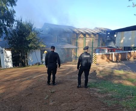 El personal del lugar se encontraba trabajando cuando detectó las llamas del fuego y el humo provenientes del depósito de yerba verde, que se propagaba rápidamente.
