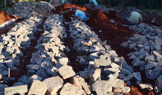 Actualmente, la ejecución presenta un 20 % de avance en la construcción del empedrado sobre la avenida Picada Finlandesa, en el sector de las plazoletas centrales del barrio.