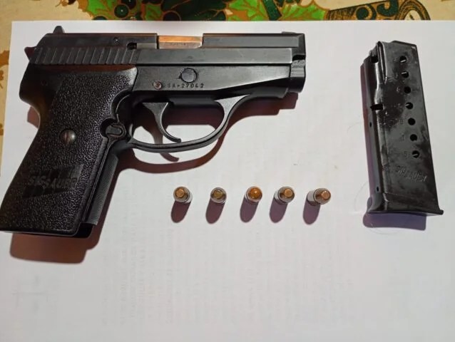 En el inmueble se incautó una pistola calibre 9 mm, con cinco cartuchos en el cargador.