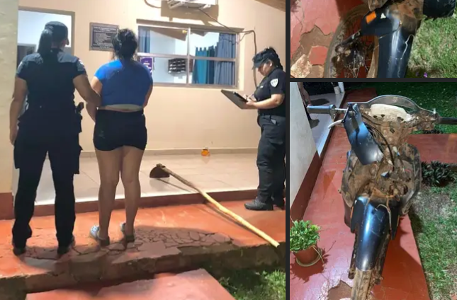 Un llamado telefónico alertó a la policía sobre lo ocurrido en el patio del domicilio de la pareja. La mujer se encontraba muy alterada y bajo los efectos del alcohol. A su lado se hallaba la motocicleta a la que había dañado utilizando una azada. Tras insultar al personal policial intentó agredir a su pareja pero los efectivos controlaron la situación, procedieron a su detención y secuestraron la azada.
