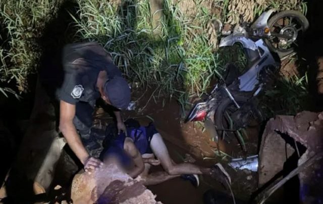 El hecho ocurrió alrededor de las 00:05 horas sobre calle Rivadavia, a la altura del kilómetro 3 Por causas que se tratan de establecer, Facundo E. (25) circulaba a bordo de una motocicleta Kymco 110 cc cuando despistó y cayó violentamente sobre la cinta asfáltica, interviniendo en el lugar personal del servicio de emergencias y efectivos de la División Criminalística.