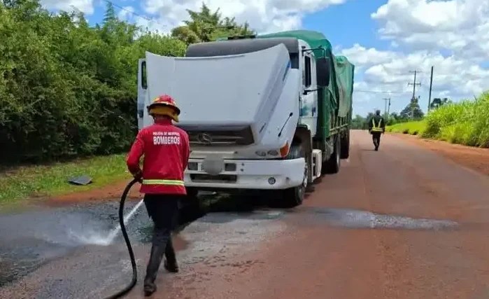 Este miércoles a las 11:35 horas, personal de bomberos acudió a un llamado por un principio de incendio vehicular en la avenida Picada Sarmiento de Oberá, en cercanías de la rotonda Ruta Nacional N° 14. Al arribar al lugar, se constató la presencia de un camión que había sufrido un foco ígneo incipiente.