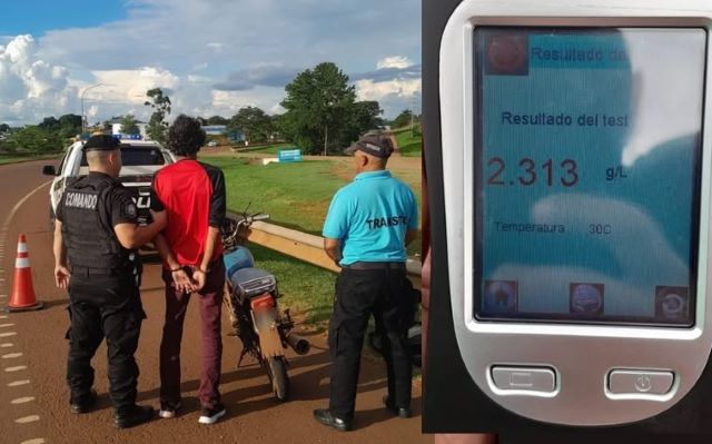 El procedimiento tuvo lugar este sábado 17 de enero, alrededor de las 18:20 horas, a la altura del kilómetro 975 de la RN 14, donde el personal policial realizó un control de rutina a una motocicleta Motomel 125 cc. Al identificar al conductor, David B. (50), se constató que presentaba signos compatibles con la ingesta de alcohol.