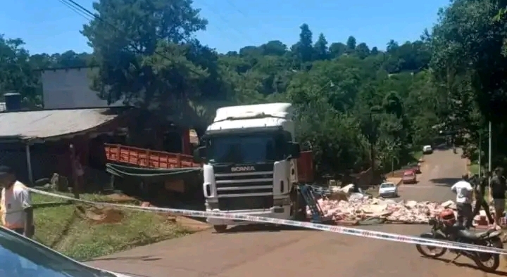 Un camión protagonizó un despiste durante la mañana de este viernes en la ciudad de Oberá, ocasionando importantes daños materiales tras afectar una vivienda y volcar parte de su carga. No se registraron personas lesionadas.
