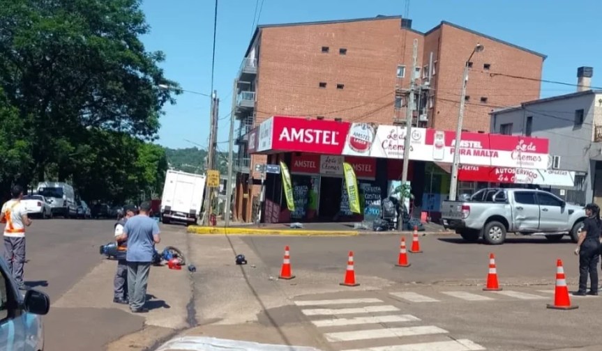 El siniestro vial se registró cerca de las 11:00 horas en intersección de Avda. Sarmiento y calle San Luis de Oberá, donde un motociclista colisionó contra una camioneta y, a raíz de ello, fue hospitalizado.